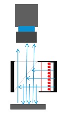 光源通过漫射板发散打到半透半反射分光片上,该分光片将光反射到物体上,再由物体反射到镜头中。由于物体反射后的光与相机处于同一个轴线上,因此,此种方式的光源被称之为同轴光源。
