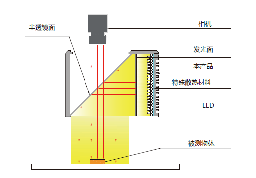 同轴光源是采用 LED 高密度阵列和半透镜组合设计