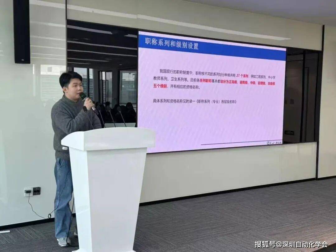 1月30日,为进一步推动自动化专业职称评审工作,提供更好更优质的人才服务,切实帮助用人单位和专技人才解决职称申报相关疑难困惑。深圳自动化学会走进深圳市捷佳伟创新能源装备股份有限公司开展了深圳市自动化专业职称评审公益性宣讲会,更贴心为企业外出公干职员同步开通了线上宣讲会。此次会议由深圳自动化学会副秘书长江嘉楷主讲。