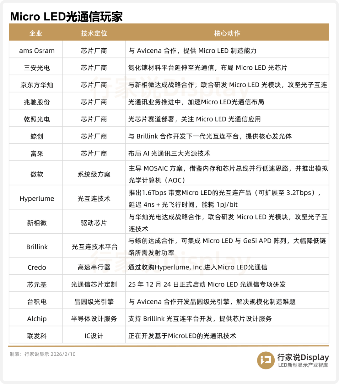 行家说Display汇总了Micro LED光通信重点厂商