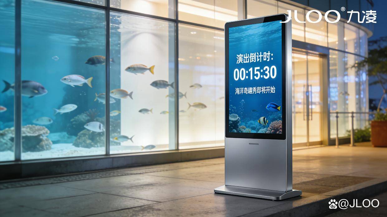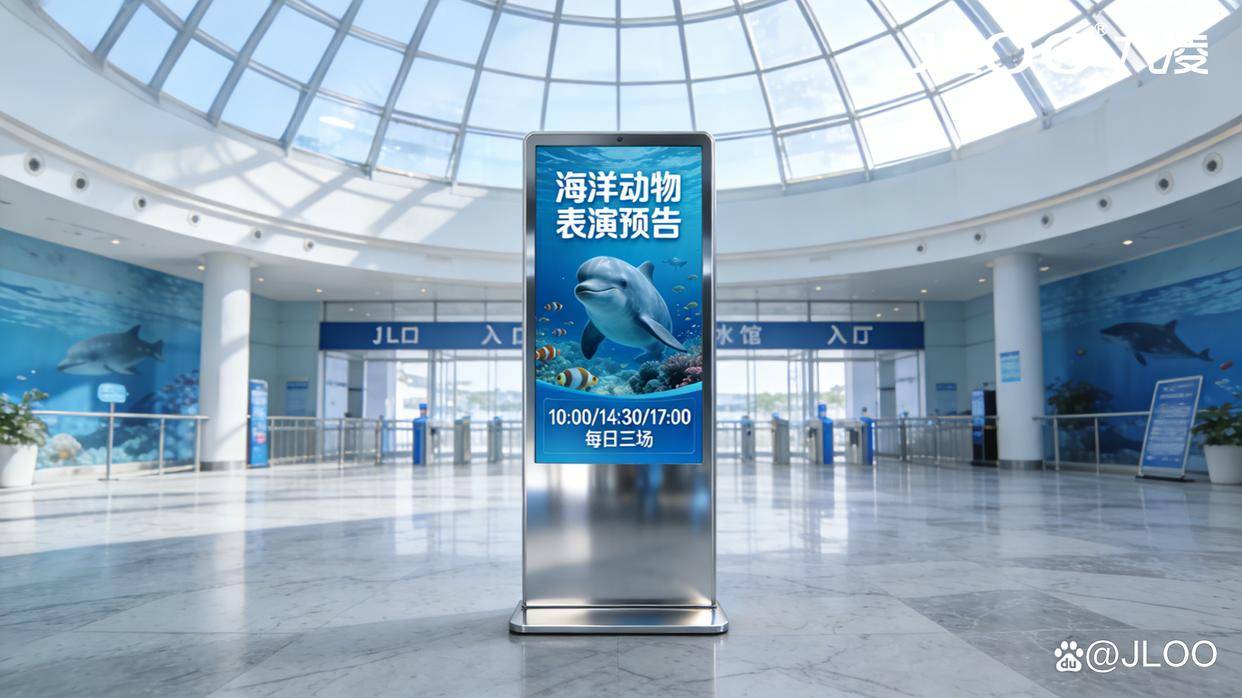 水族馆作为集科普、观赏、娱乐于一体的休闲场所,核心竞争力在于打造沉浸式海洋体验,而表演预告的精准触达与互动娱乐的创新升级,是提升游客体验、增强场馆粘性的关键。九凌JLOO深耕商用显示领域十余载,依托自身在液晶显示技术上的深厚积淀,结合水族馆场景的潮湿、强光、高人流等特殊需求,推出专属液晶广告机应用方案,将表演预告的高效传递与互动娱乐的趣味升级深度融合,打破传统水族馆“单向观赏”的局限,以科技赋能场馆,打造“观赏+互动+记忆点”的三维体验,助力水族馆提升运营效率、强化品牌口碑,实现差异化竞争。