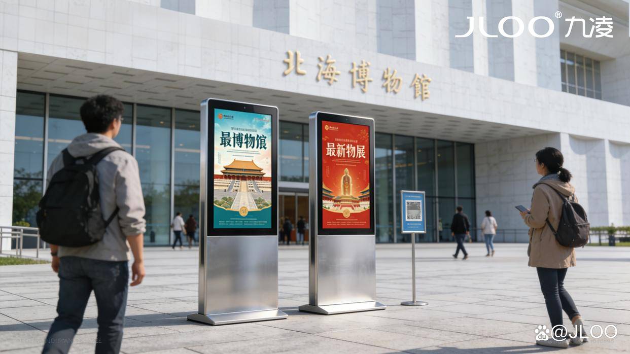 博物馆外文化IP宣传与互动,是文化传播的重要延伸,也是博物馆数字化转型的必然趋势。九凌JLOO凭借自身在液晶广告机领域的技术积淀、产品优势与场景适配经验,精准贴合博物馆外场景的需求,打造“高清宣传+智能互动+长效运维”的一体化方案,既破解了传统户外宣传的诸多痛点,又实现了文化IP的引流、科普、变现三重目标,推动“科技+文化”的双向赋能。